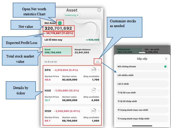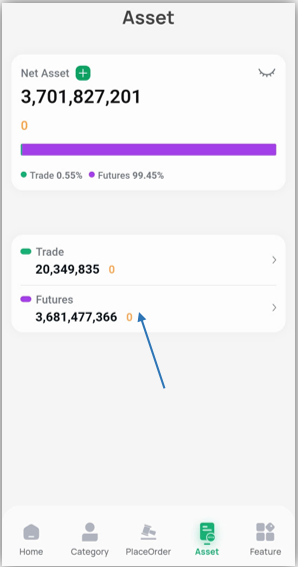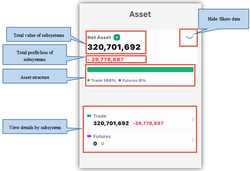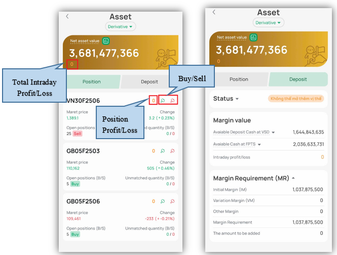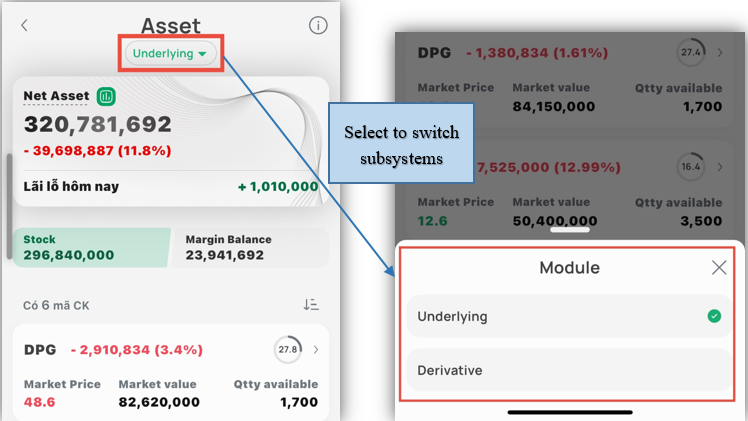 To see the assets details of the Derivatives system, from Asset screen, you select the “Derivatives”.