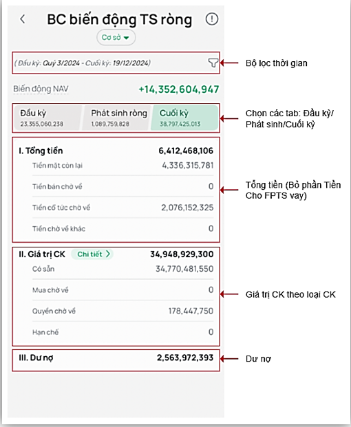- NAV at the beginning, NAV at the ending of the period: In the Total cash section, please leave the amount lent to FPTS