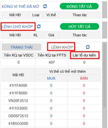 - Tab Đã khớp: hiển thị các lệnh đã khớp trong phiên